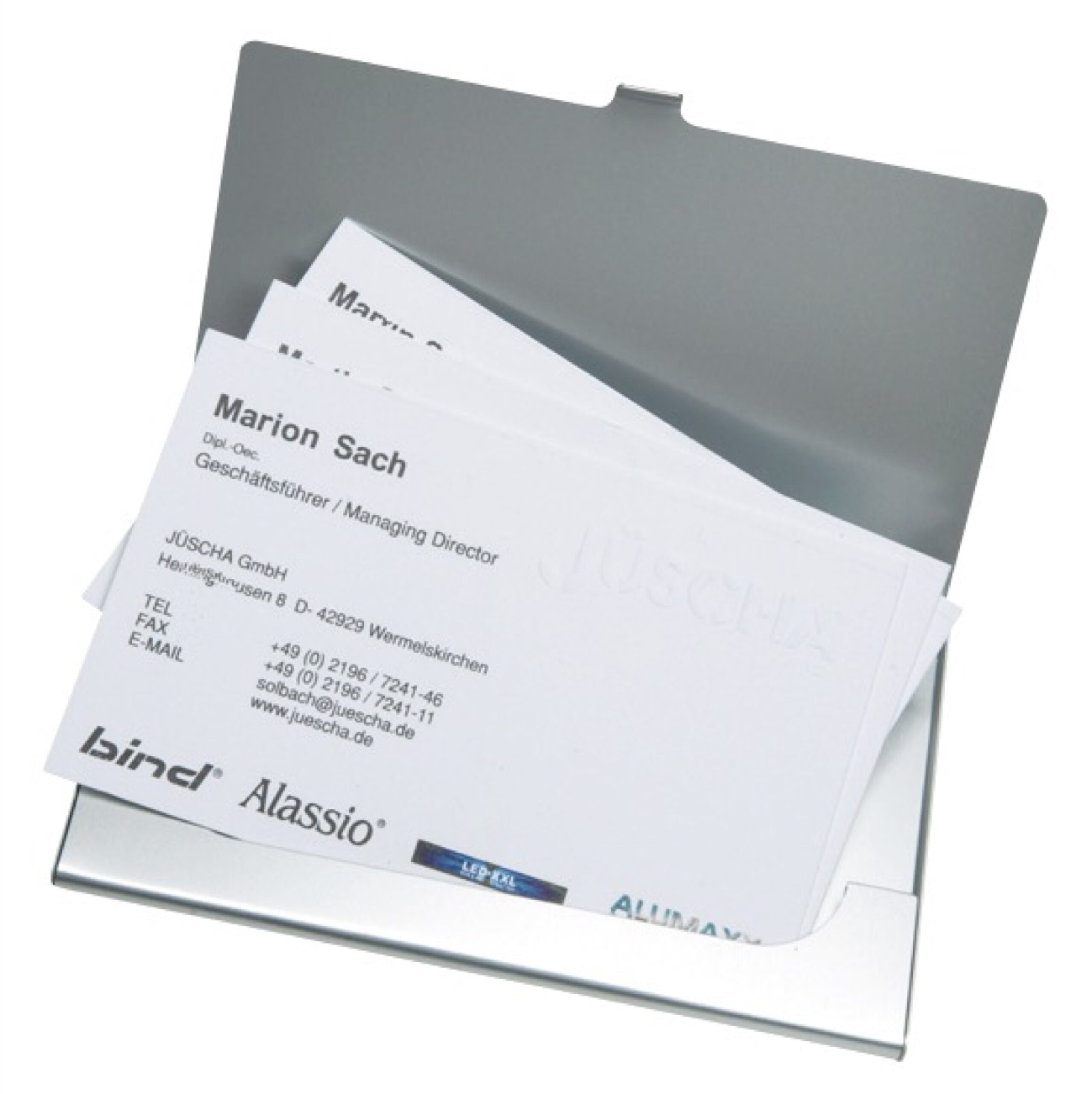 Das Visitenkarten-Etui in matt silber von Alassio ist ein elegantes und praktisches Accessoire für den professionellen Einsatz. Das Etui ist aus hochwertigem Aluminium gefertigt und hat eine matte Oberfläche, die ihm ein edles Aussehen verleiht. Das Etui bietet Platz für bis zu 10 Visitenkarten und schützt sie vor Beschädigungen und Verschmutzungen.