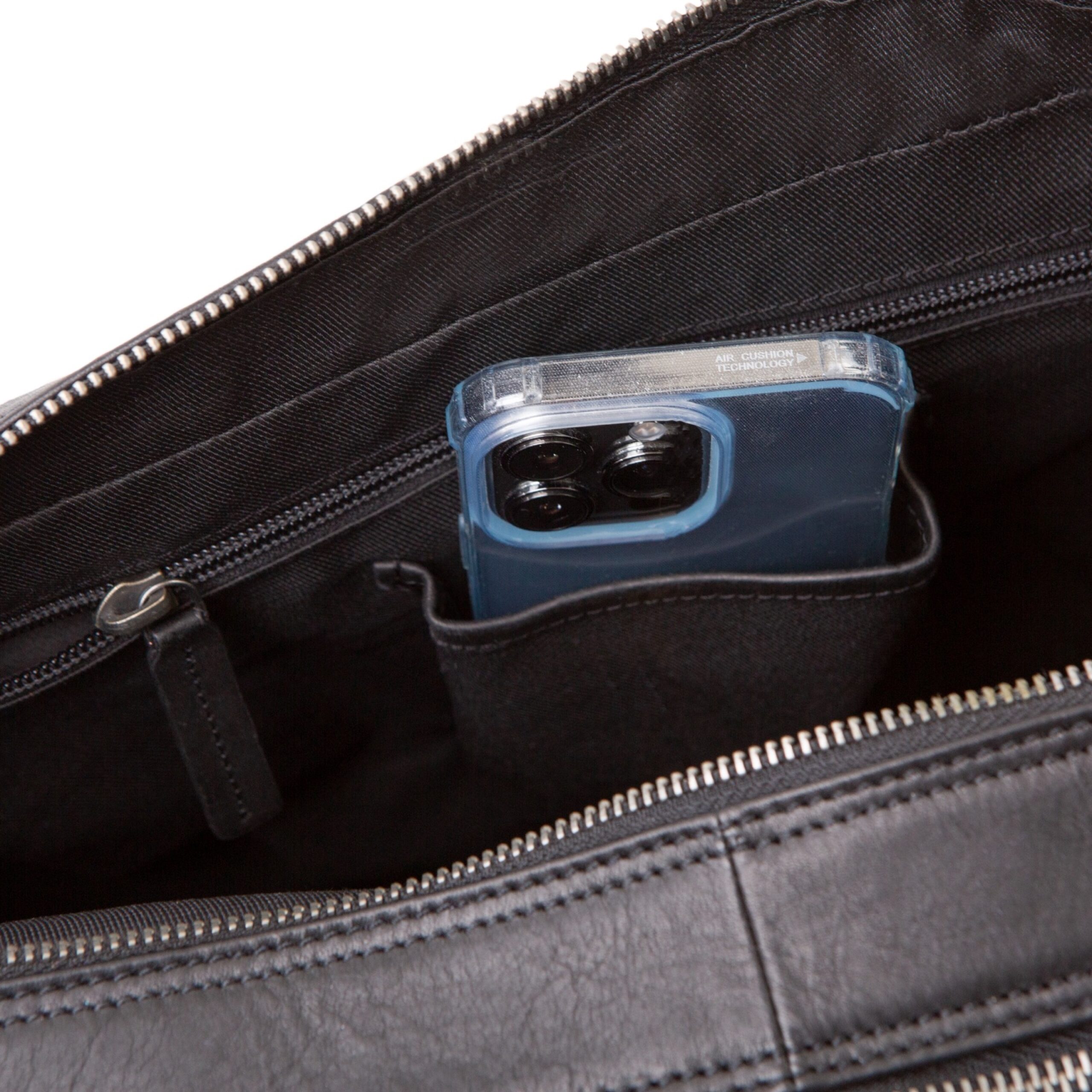Die Nomad Business-Tasche von Pride and Soul ist eine elegante und funktionale Tasche für den modernen Geschäftsmann oder die Geschäftsfrau. Sie ist in der Farbe Schwarz erhältlich und besteht aus hochwertigem Leder, das für eine lange Haltbarkeit und eine ansprechende Optik sorgt.