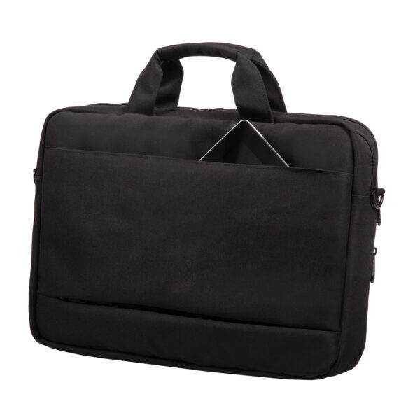 Die Laptoptasche RPET in schwarz ist eine stilvolle und umweltfreundliche Option, um deinen Laptop sicher und bequem zu transportieren. Die Tasche besteht aus recyceltem PET-Material und ist somit eine nachhaltige Wahl. Die Tasche bietet ausreichend Platz für einen Laptop mit einer Größe von bis zu 17 Zoll und verfügt über ein Hauptfach sowie mehrere zusätzliche Fächer für Zubehör und persönliche Gegenstände. Das Hauptfach ist mit einem gepolsterten Laptopfach ausgestattet, das deinen Laptop vor Stößen und Kratzern schützt. Die Laptoptasche RPET in schwarz hat eine strapazierfähige Konstruktion und ist mit einem Schultergurt ausgestattet, der für maximalen Komfort und Bequemlichkeit sorgt. Die Tasche hat auch zwei Griffe an der Oberseite, so dass du sie einfach tragen oder als Handgepäck verwenden kannst. Das Design der Laptoptasche RPET in schwarz ist minimalistisch und elegant. Die Tasche hat ein schwarzes Äußeres und ist mit einem dezenten Markenlogo versehen. Sie passt perfekt zu jedem Outfit und Anlass, ob für die Arbeit, die Uni oder auf Reisen.