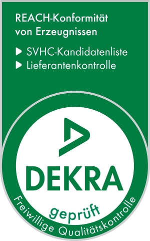 Jüscha® GmbH has already introduced and implemented corresponding processes and procedures internally in the past, for which it was recognised for the first time in November 2012 by the DEKRAreceived the "REACH Conformity of Products" seal. JÜSCHA has received this seal every year to date. Jüscha® GmbH uses the certified procedure to check product safety and make the chemical composition of the articles in its extensive portfolio transparent.