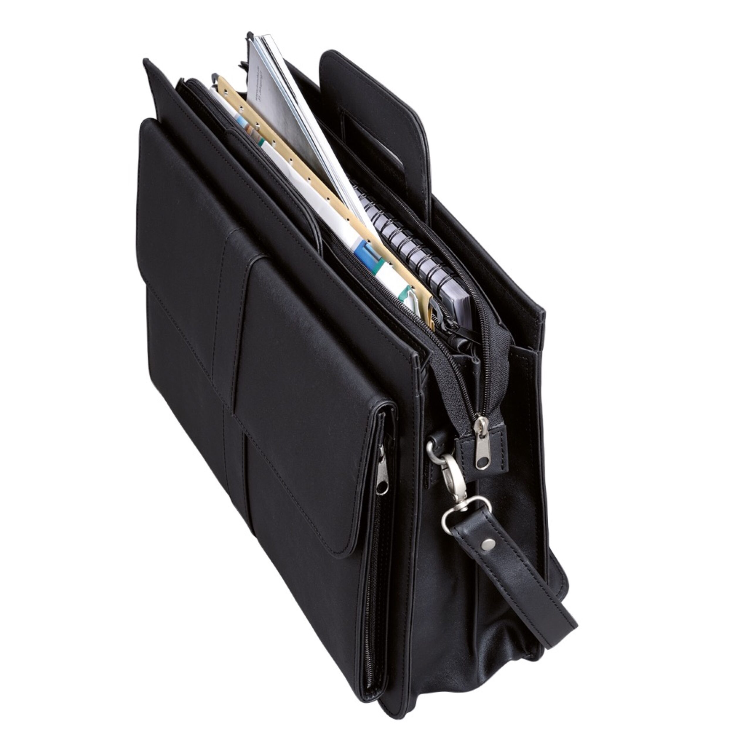 Retractable carrying handles, detachable shoulder strap, zip front compartment with three pen loops, six business card slots and another slip pocket, zip pocket. Main compartment with zip incl. two document compartments and zip pocket in the centre.