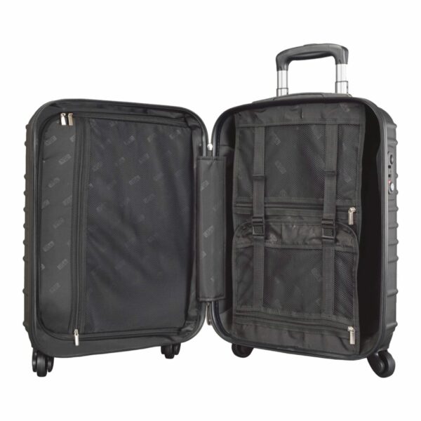 The interior of the trolley is well organised and has several compartments and pockets for efficient storage of items such as clothing, documents and other personal items.
